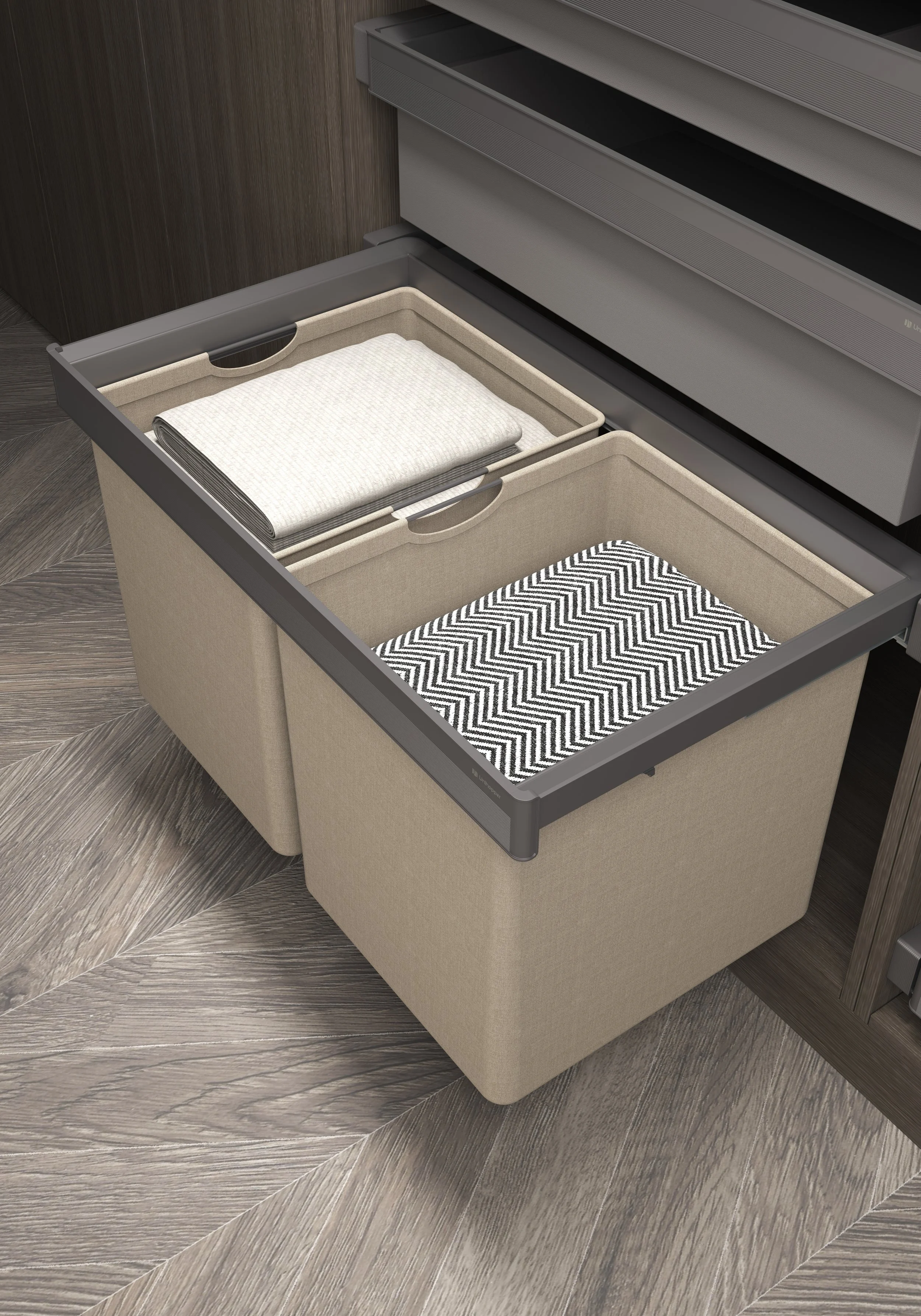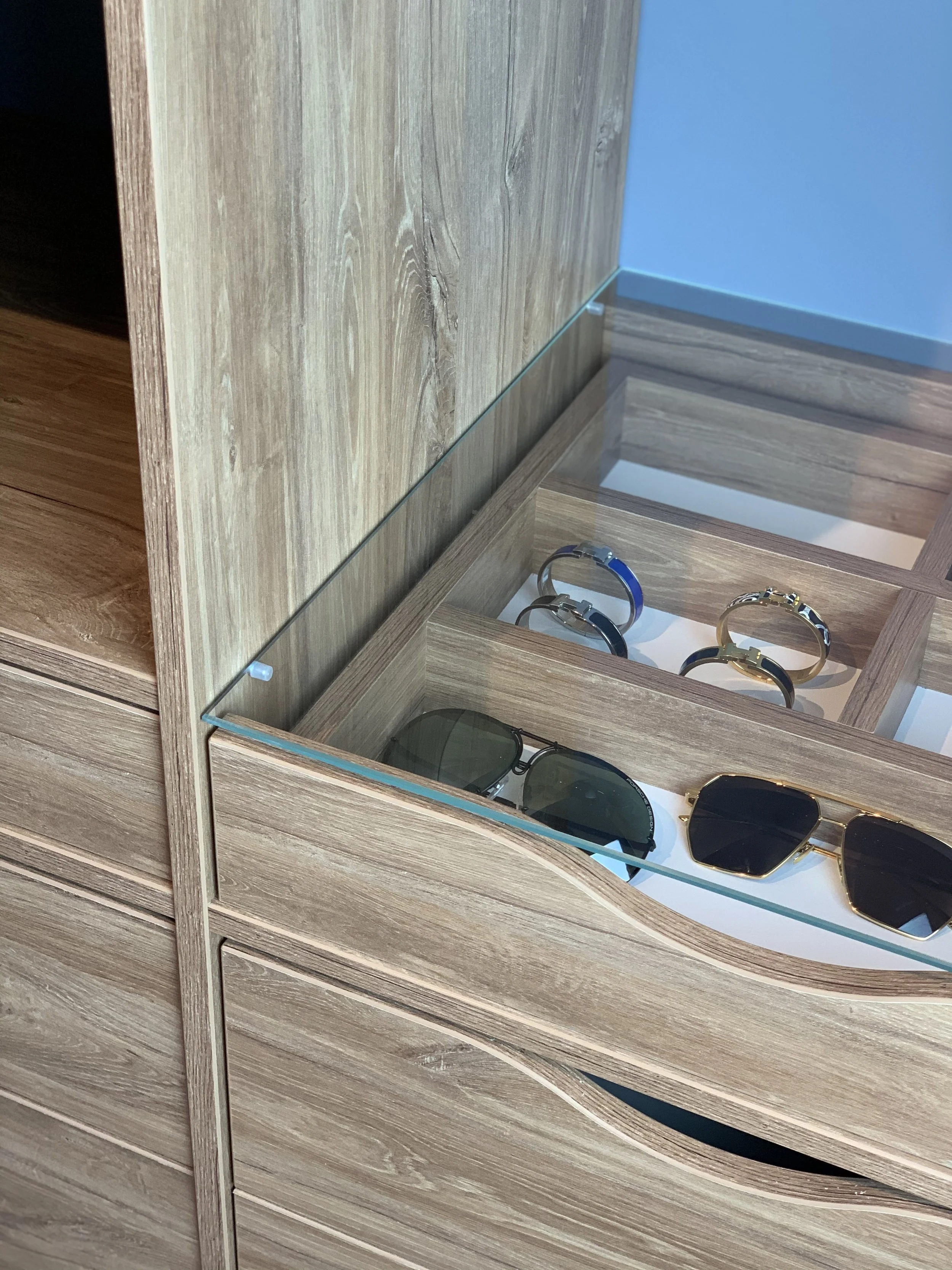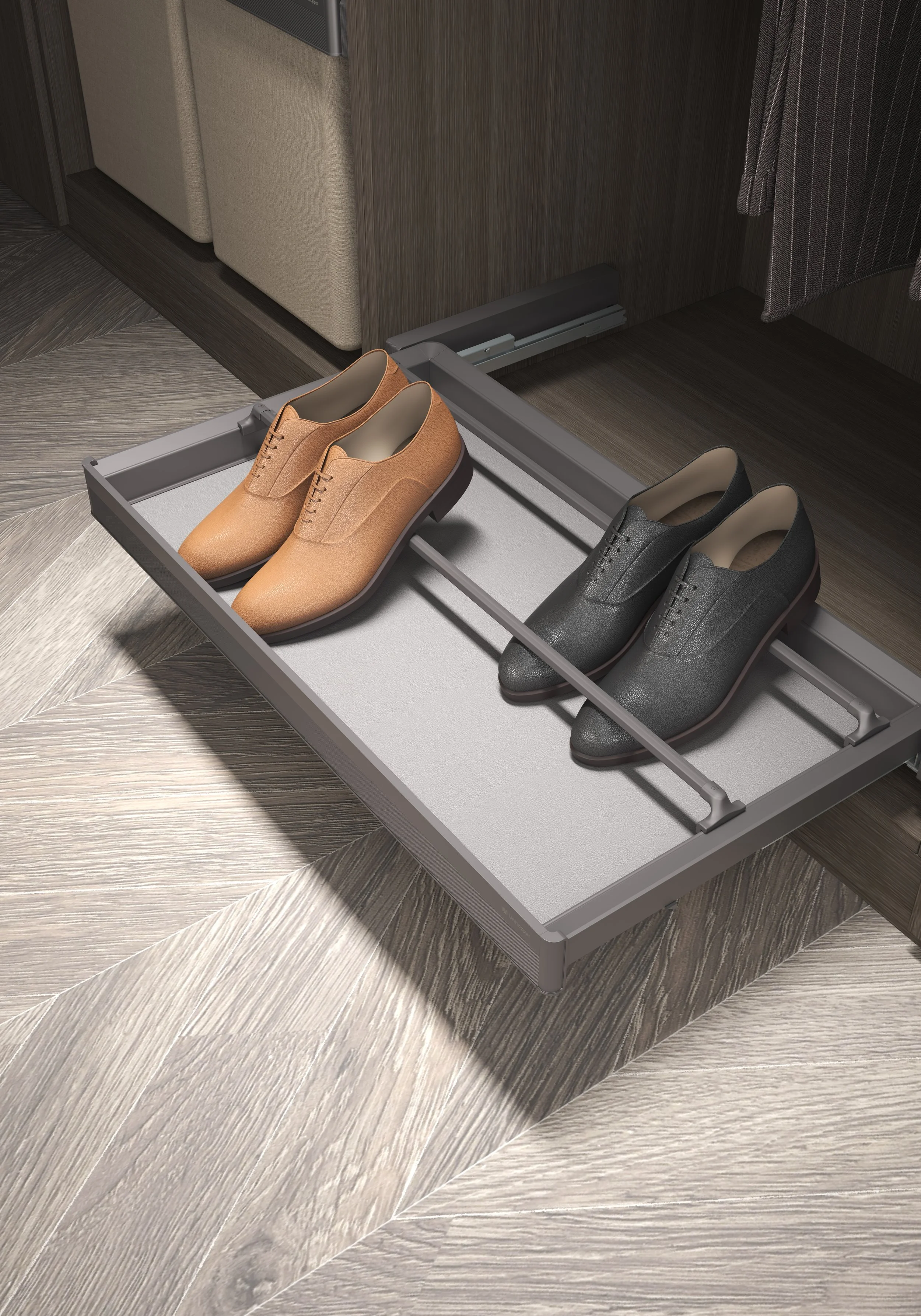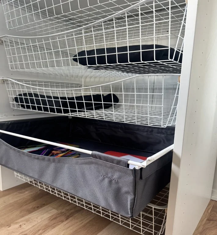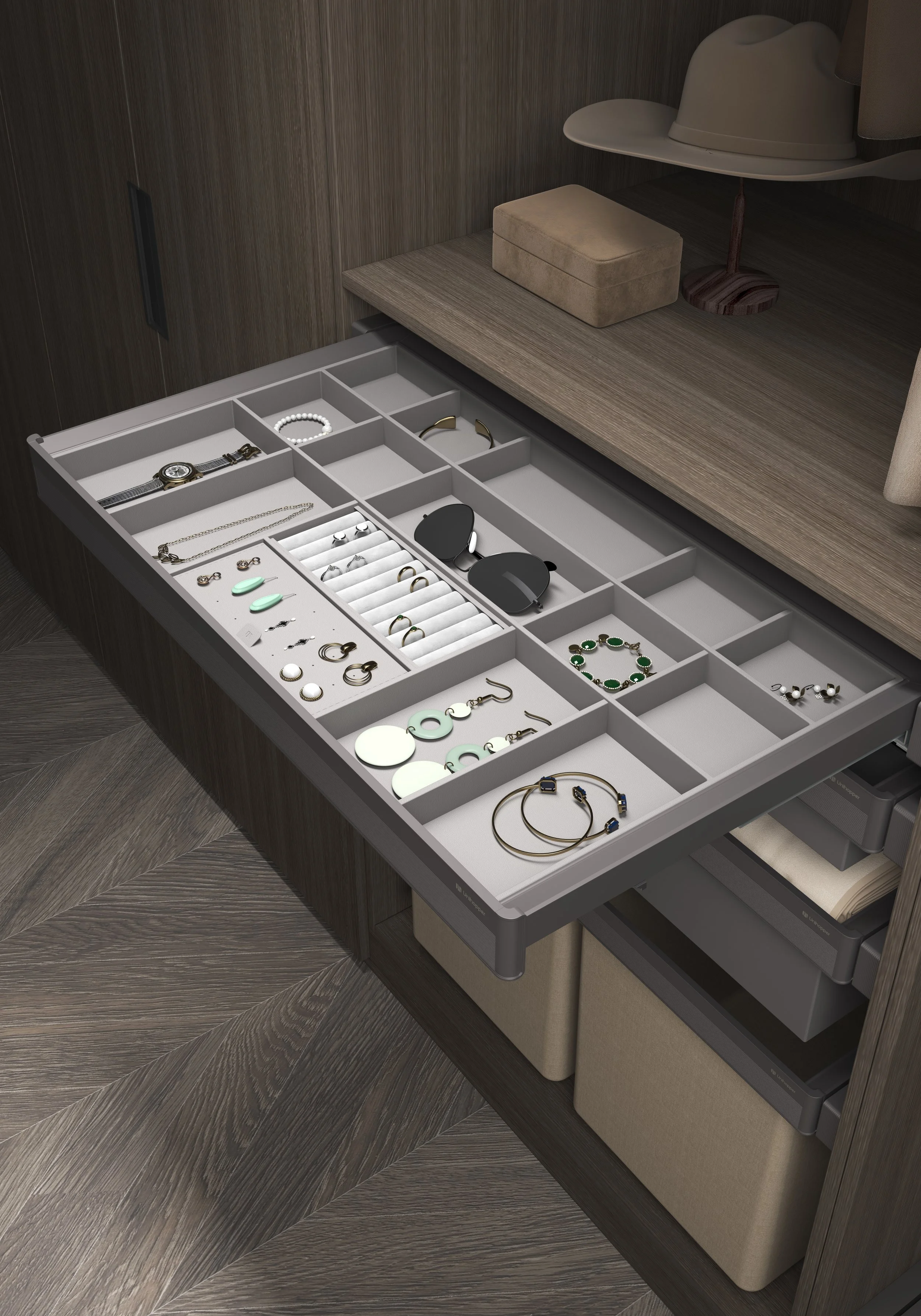 Vi tilbyr et bredt utvalg av smarte oppbevaringsløsninger. Uttrekkbare skuffer, smykkeskuffer, bukse- og skohyller, trådkurver og praktiske innsatser – som tilpasses garderobens mål og dine behov. Alt er designet for enkel tilgang, effektiv bruk av plassen og lang levetid.